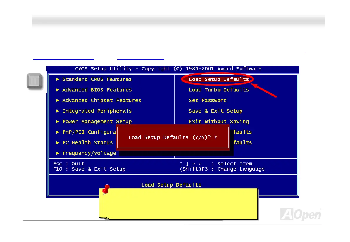 POST (Power-On Self Test). Choose "Load Setup Defaults" for recommended optimal performance.