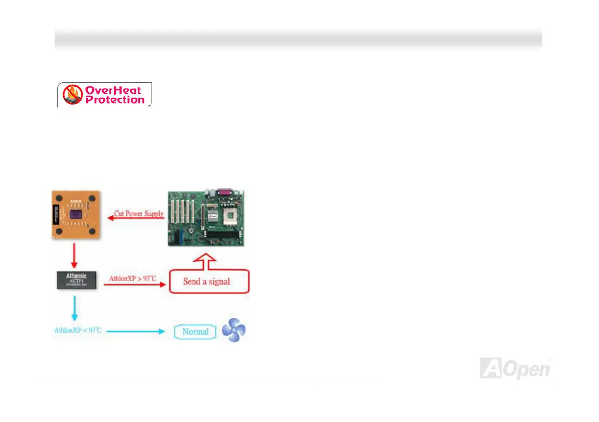 accidental failure of CPU fan, which could cause the burning down of the AthlonXP CPU, we, AOpen, have meticulously