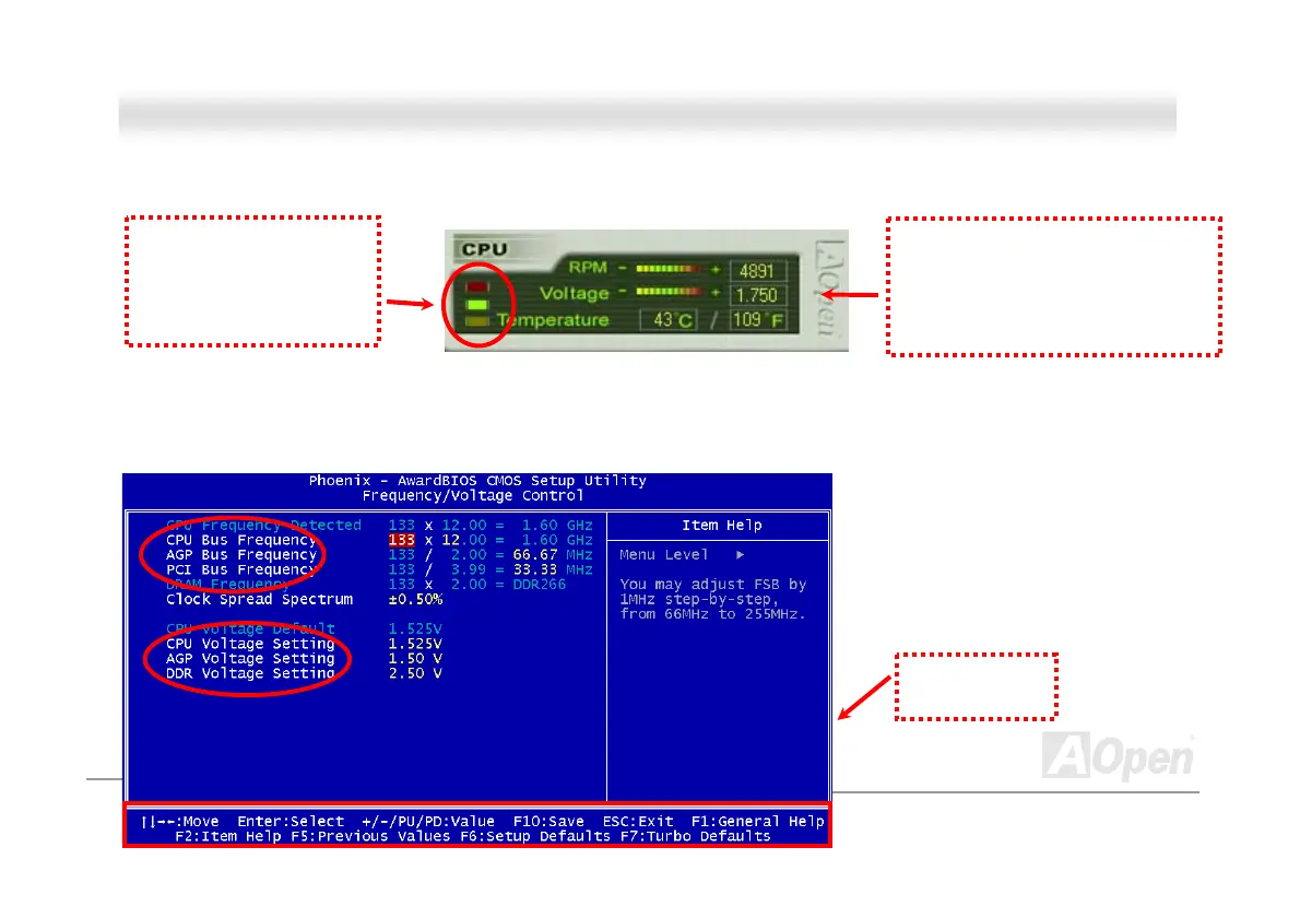 Apart from EzClock utility, the voltage and frequency values of CPU, PCI and memory can also be adjusted on BIOS page. By pressing