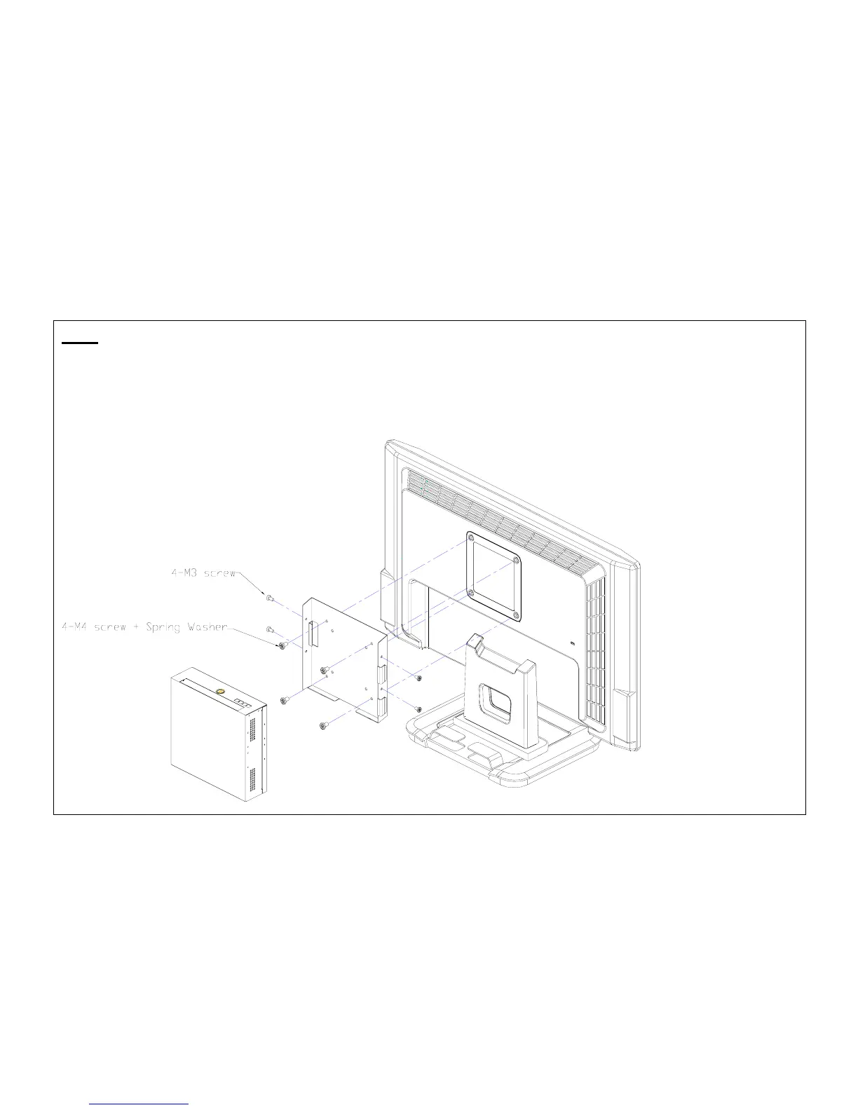 Engine behind the monitor. You can put on the Holder on monitor VESA mounting hole first, and