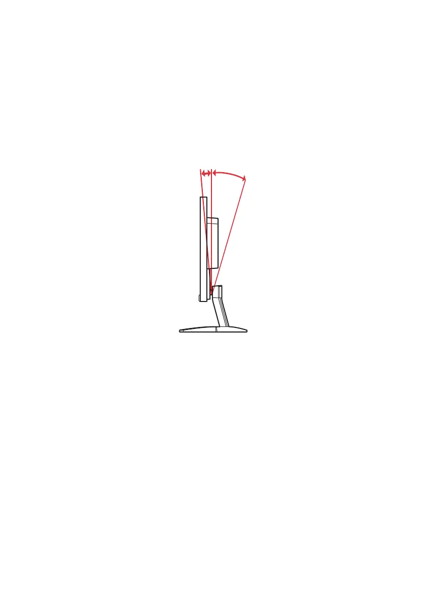 The monitor can be adjusted to 15 degrees up or 5 degrees down as indicated