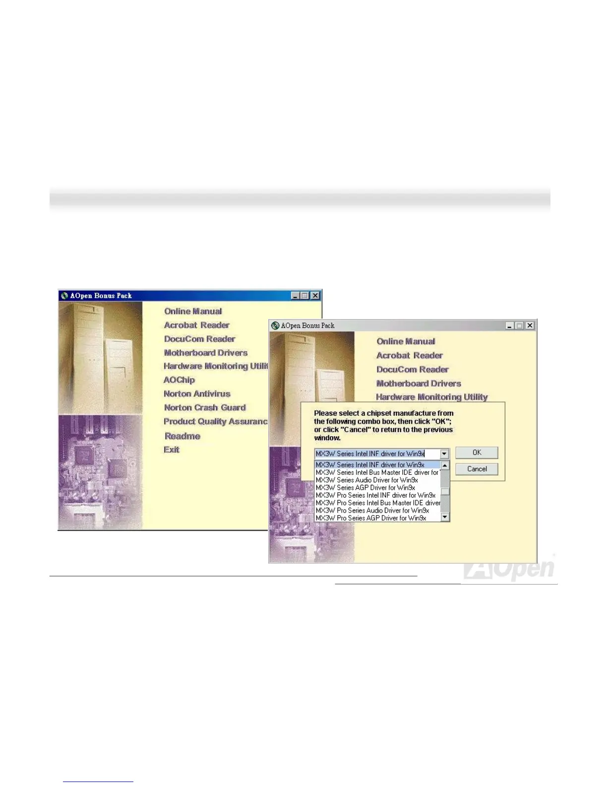 AOpen MX3W Pro - Autorun Menu from Bonus CD Disc
