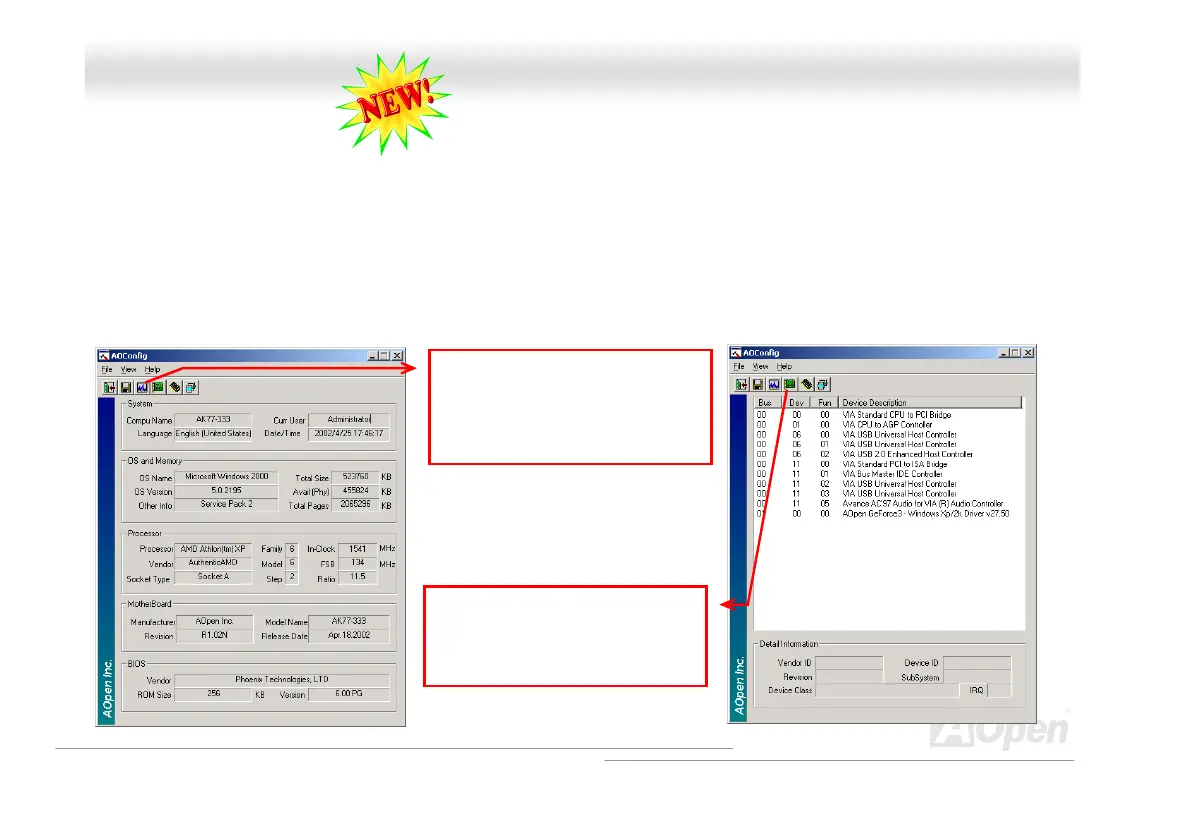 operation system and hardware such as motherboard, CPU, memory, PCI devices and IDE devices. The powerful utility also