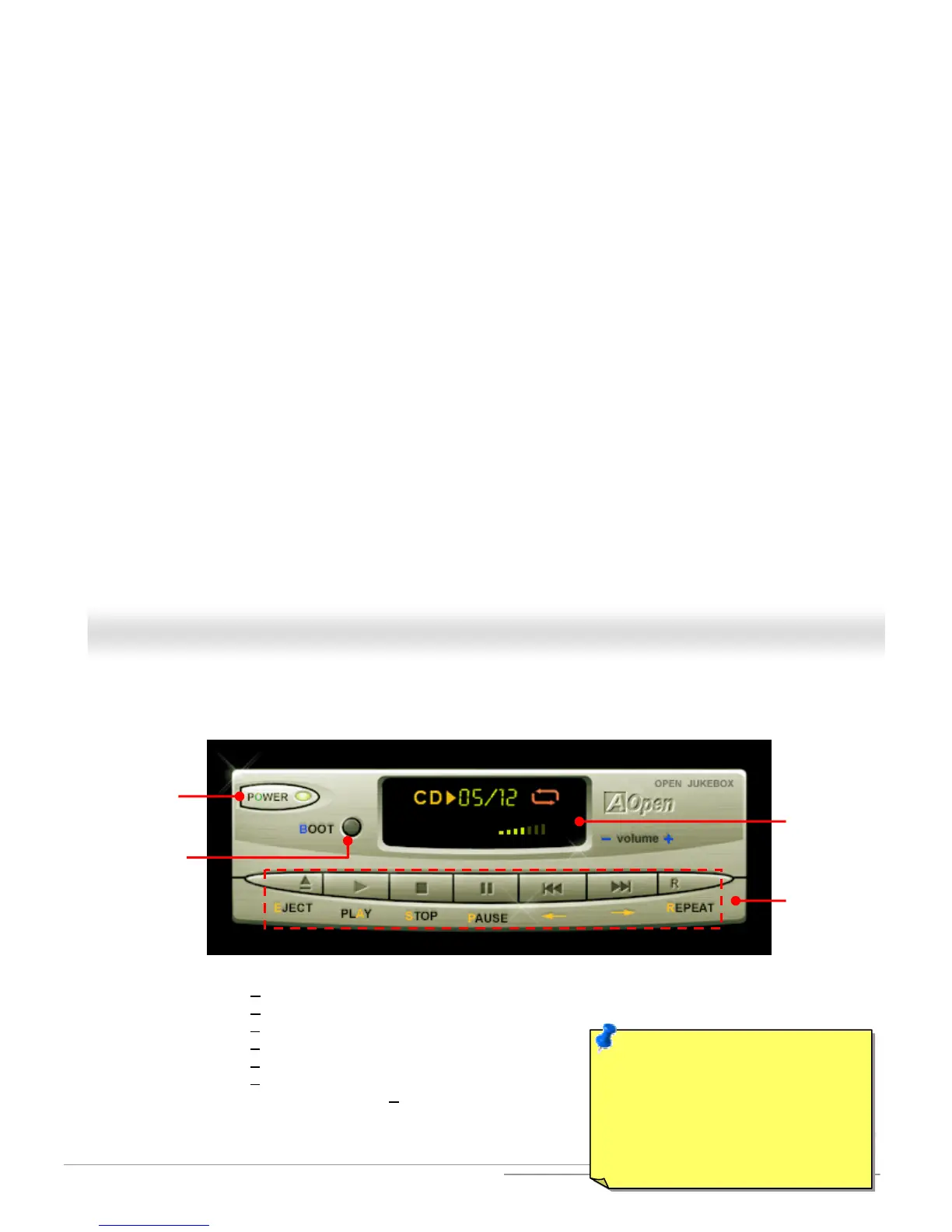 playing Open JukeBox Player couldn’t be easier than the traditional CD Players. Below is the function description of respective