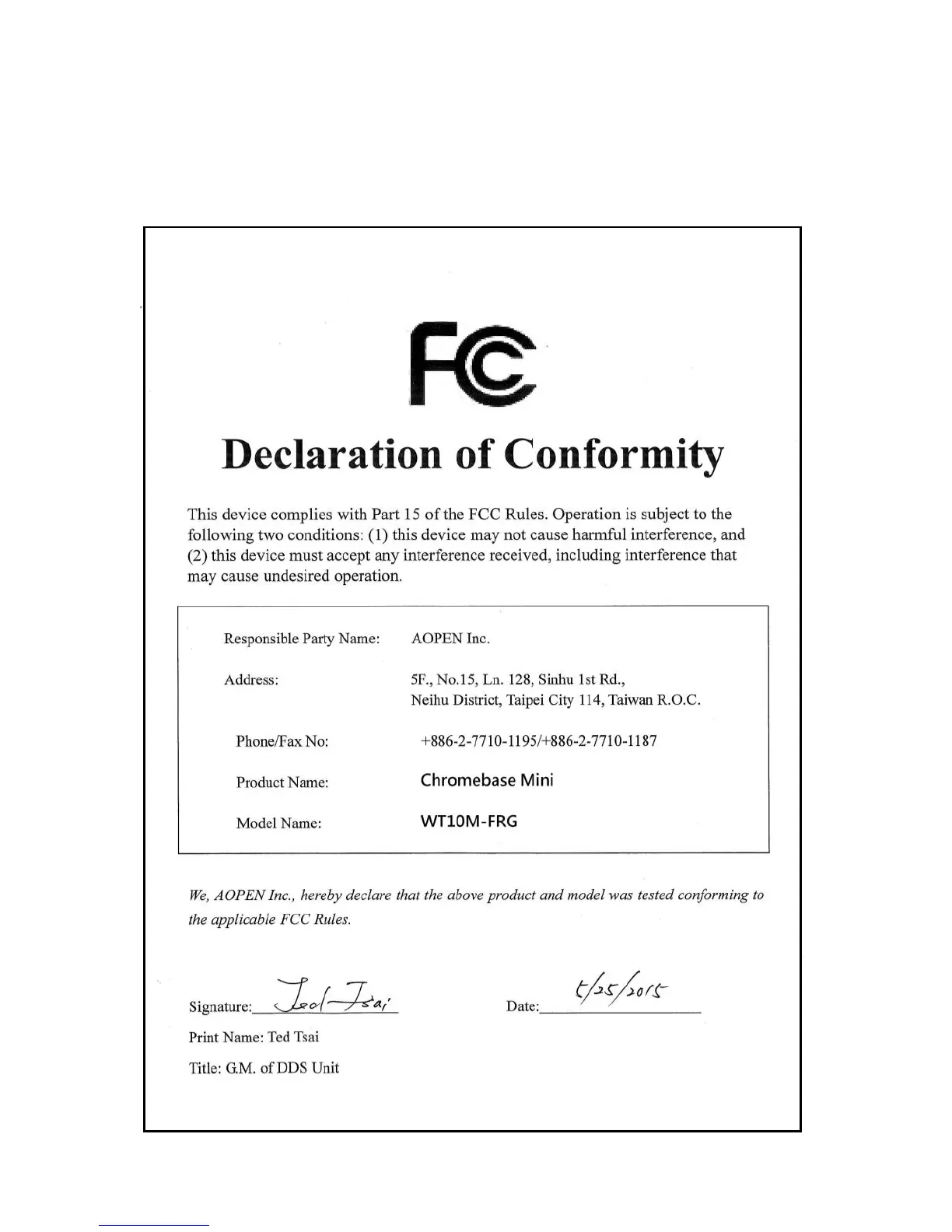 AOpen WT10M-FRG - 4 Declaration