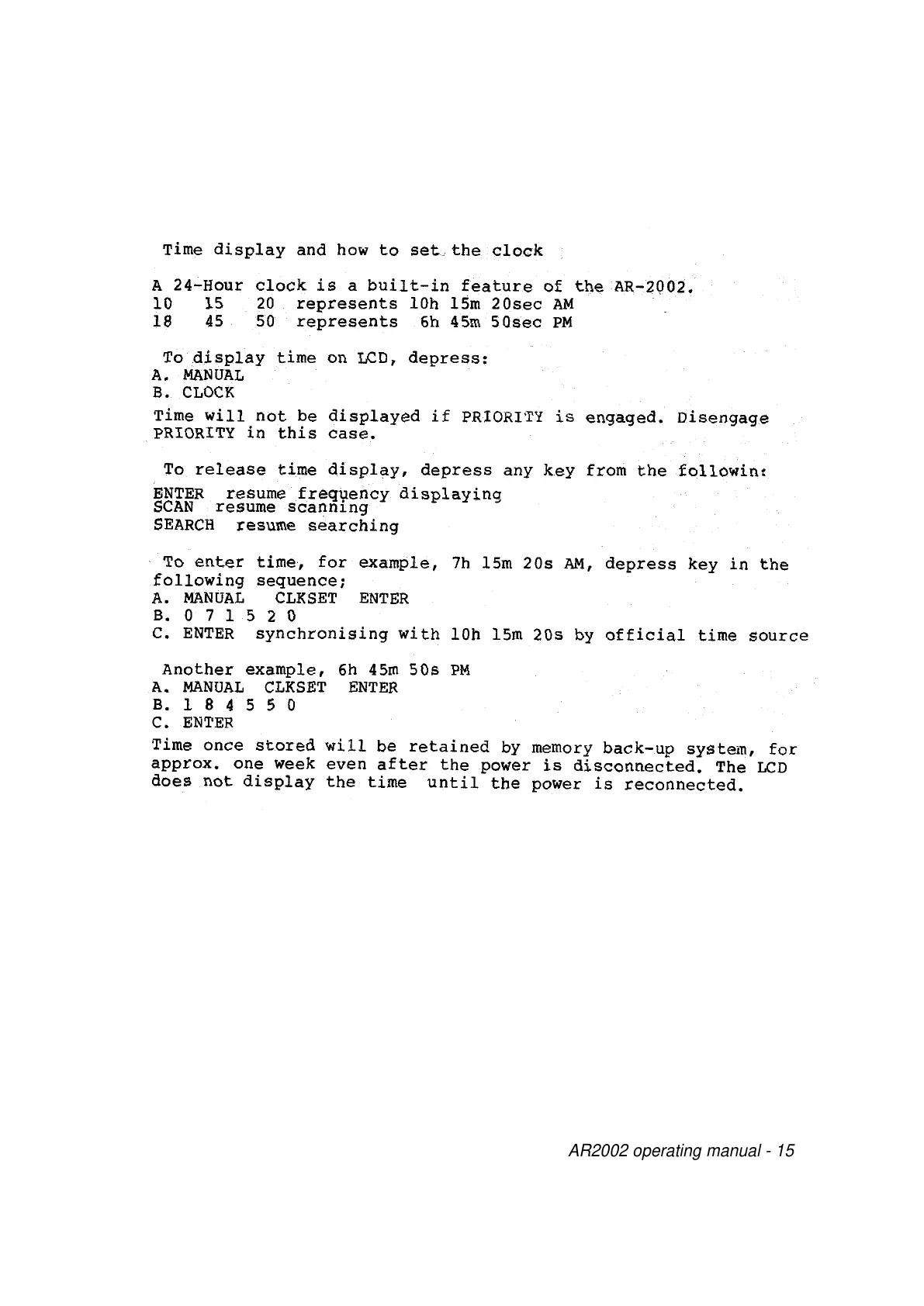 AOR AR-2002 - Clock and Time Display