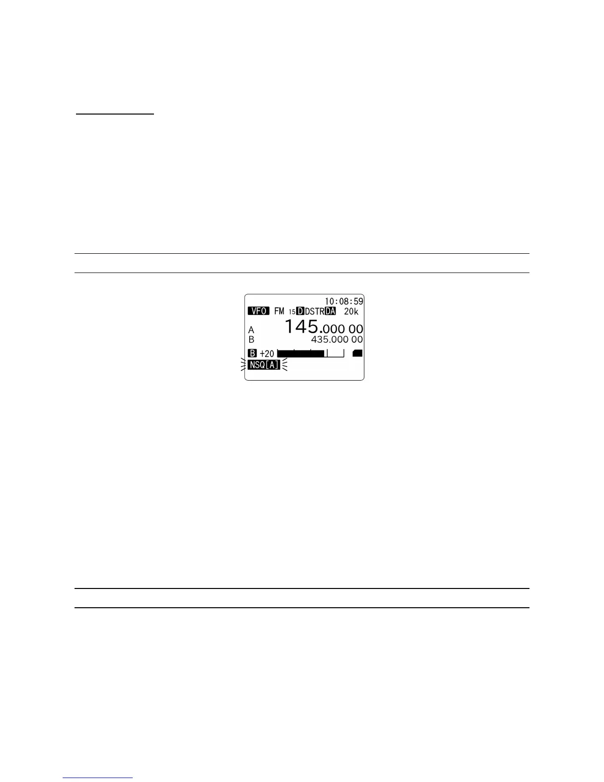 NSQ (Noise Squelch): Available in FM mode