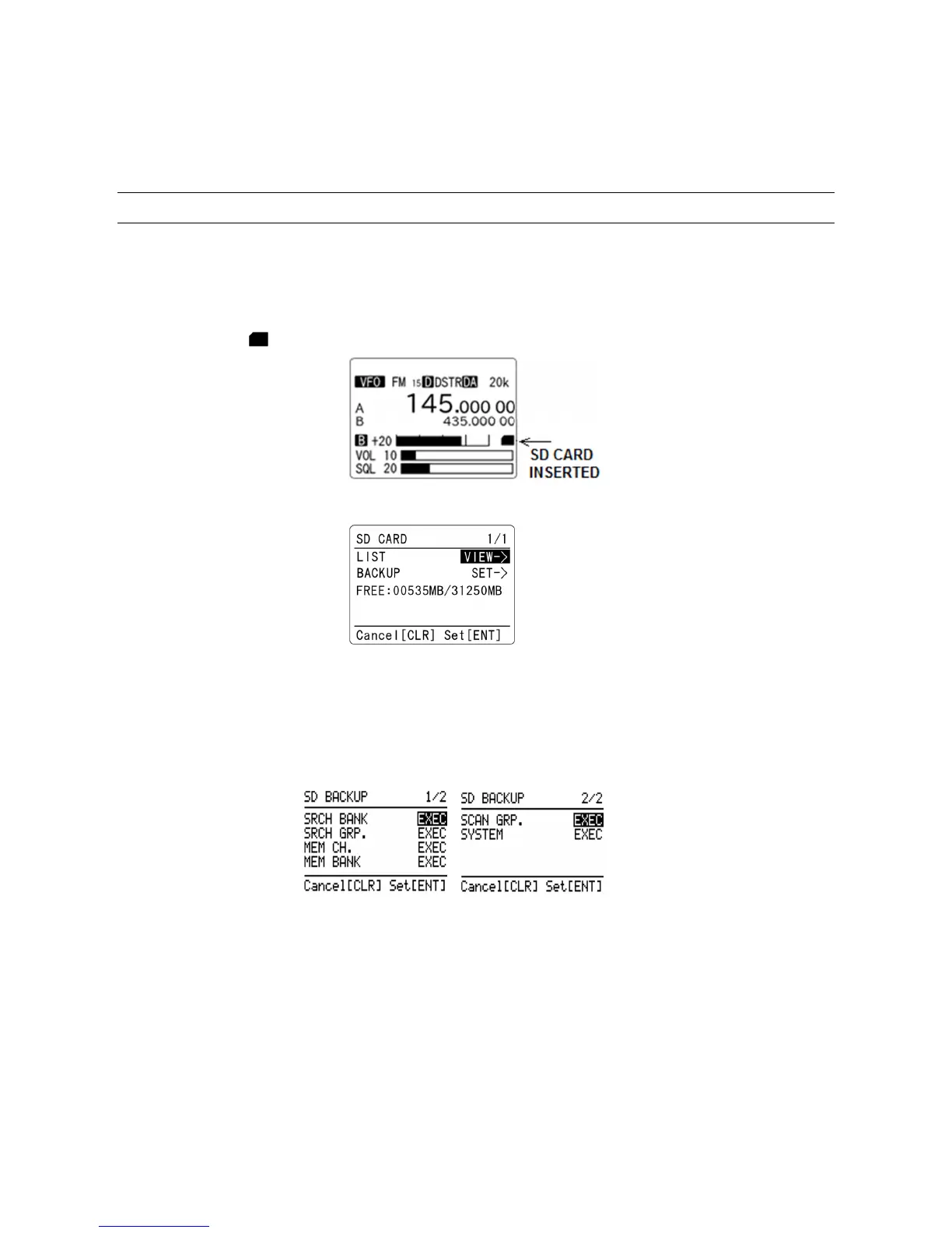 3. Press the [F] key and then the [●] (SD) key. The following screen will appear.