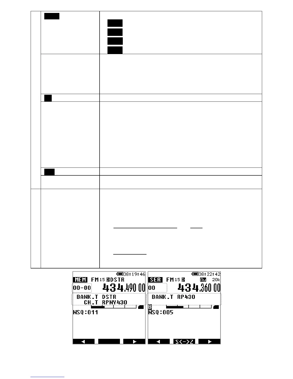 For search mode, the bank number is displayed on the upper