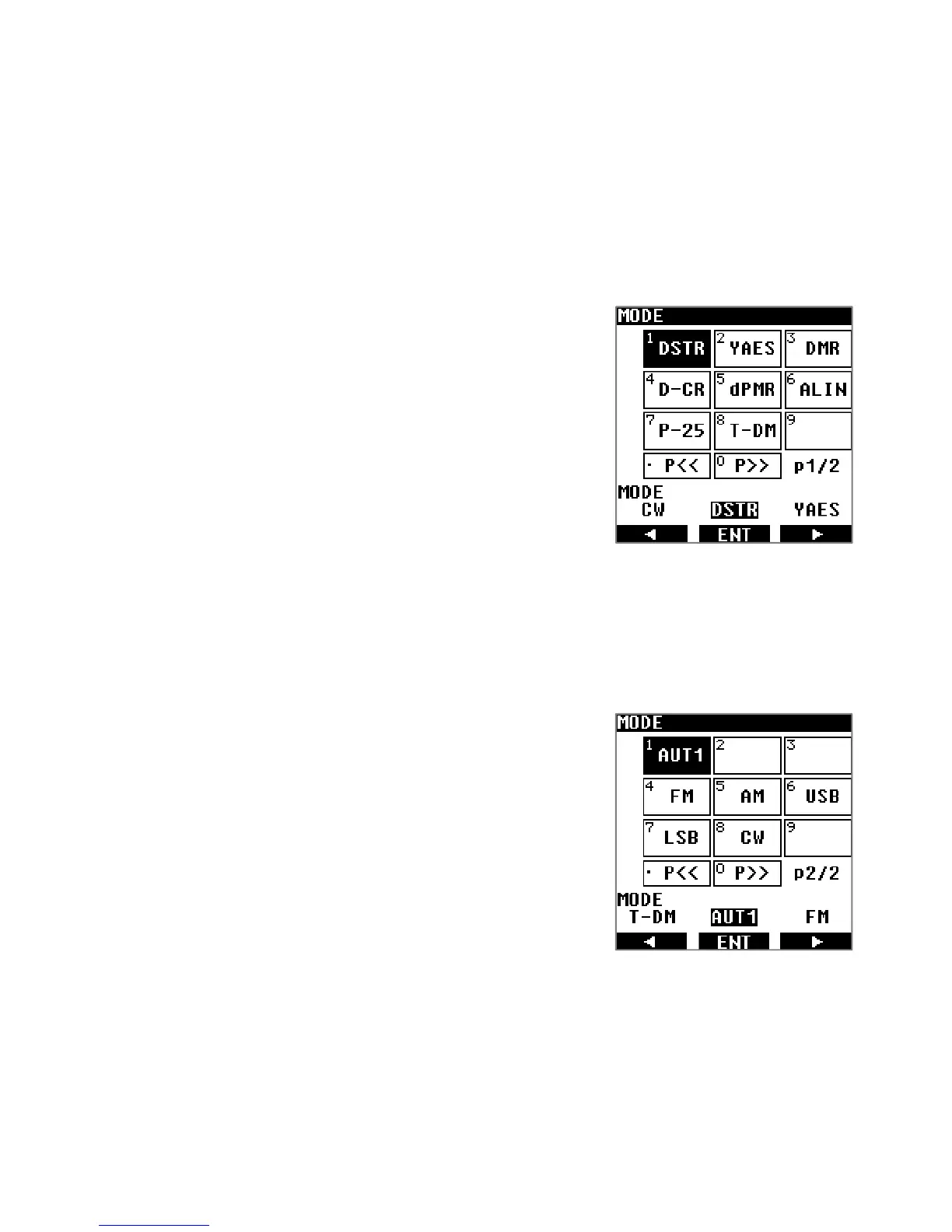 Press [MODE] and use the arrows [◀] or [▶] to select the desired receive mode and validate