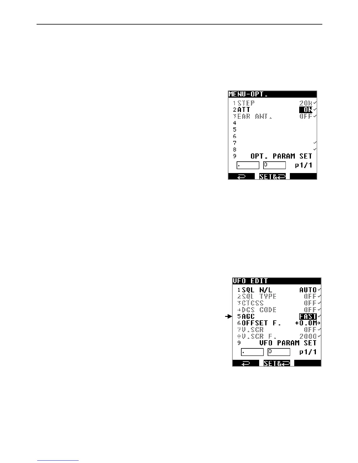 5. Use [▶] to select [VFO PARAM SET] and press [ENT] to save your selection.