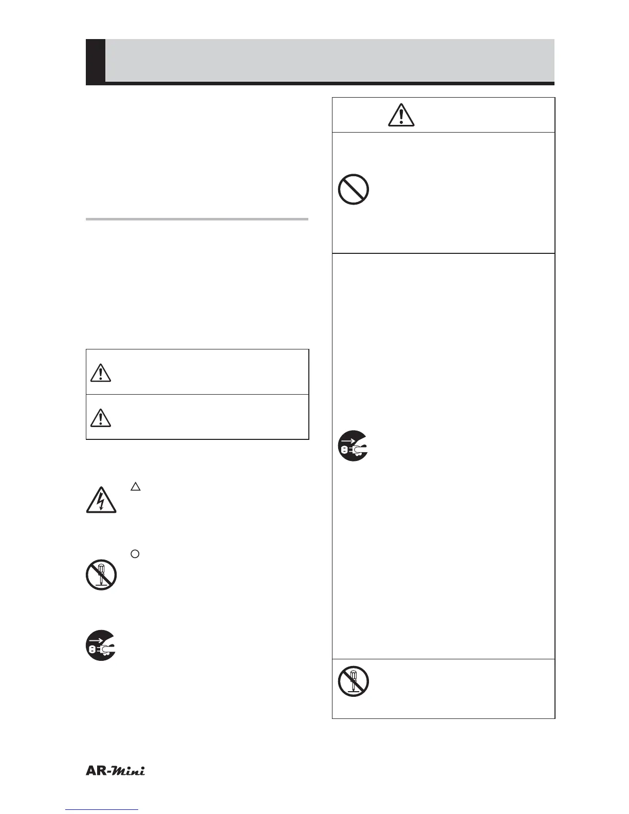 • Do not disassemble or modify AR-mini