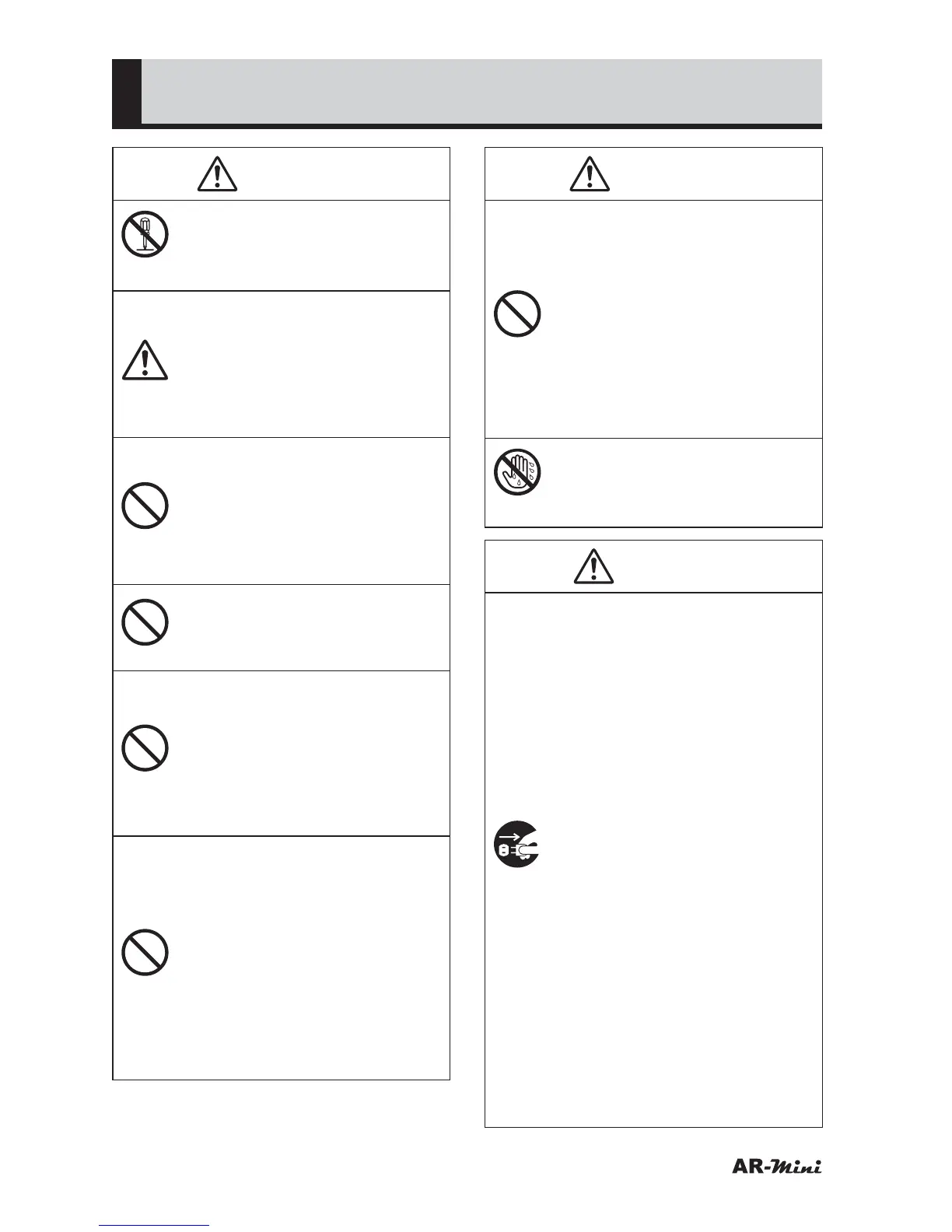 • Do not use AR-mini or AC adapter in an