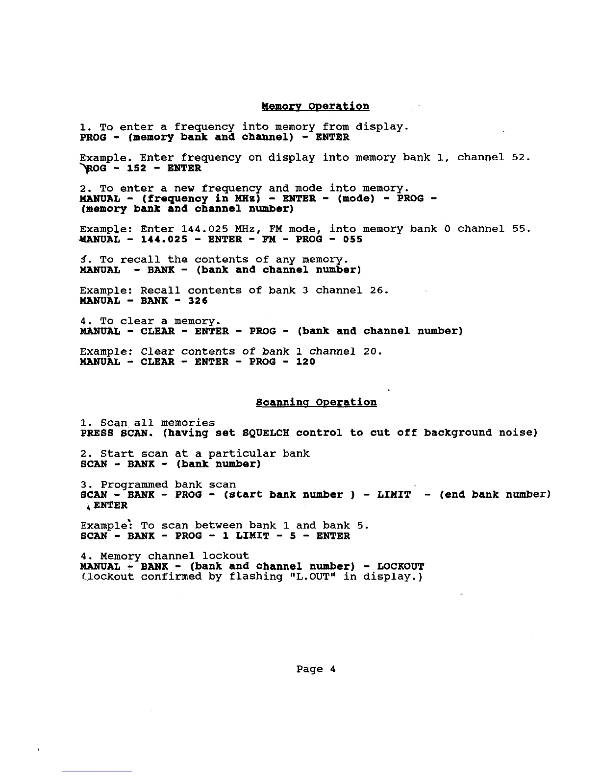 Example. Enter frequency on display into memory bank