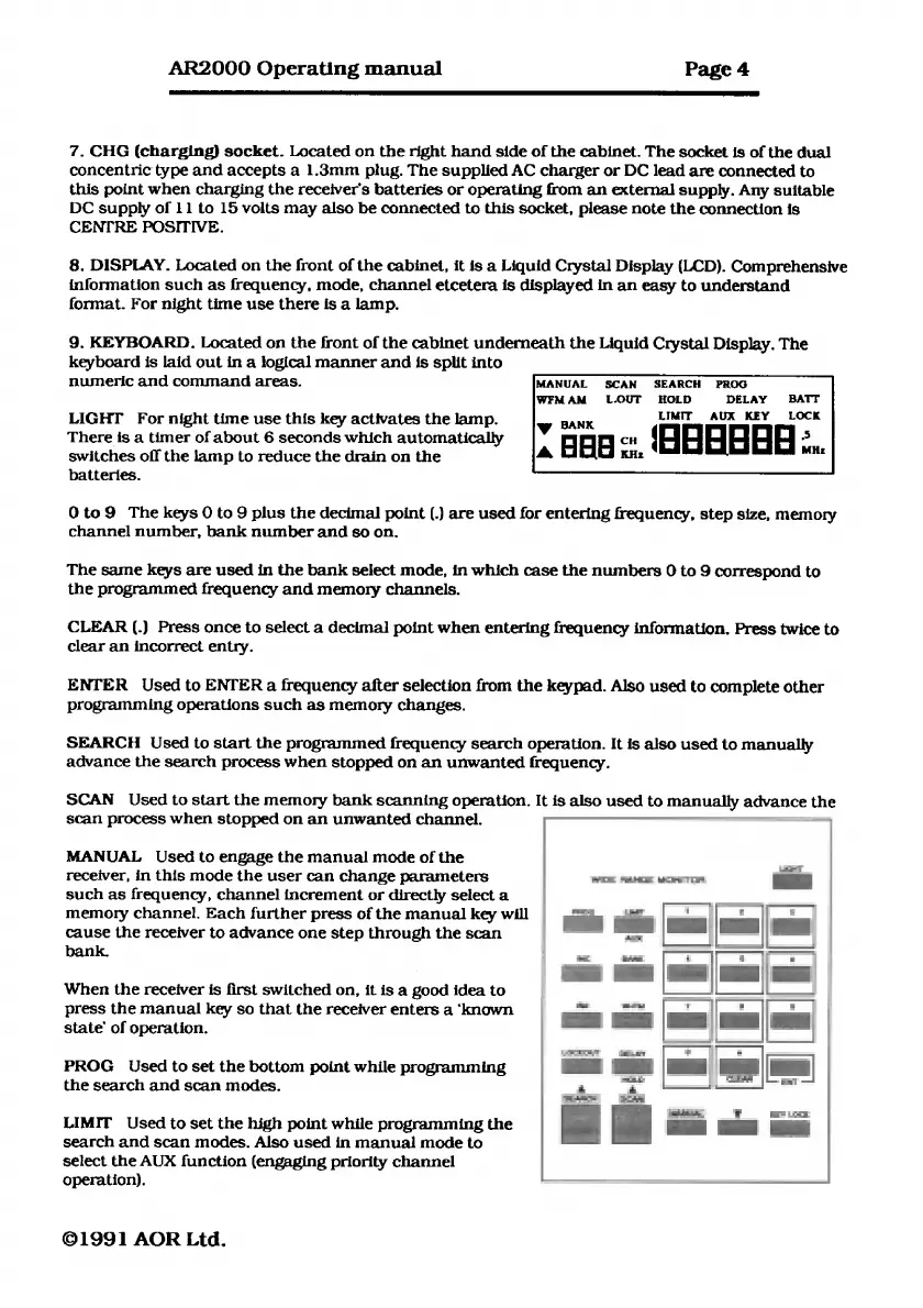 AOR AR2000 - Audio Output and Display Controls; Keyboard Layout and Function Keys