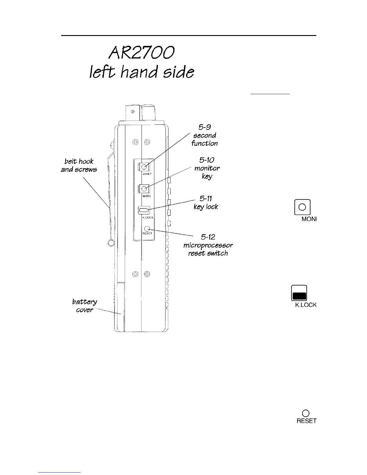 (except for the [MONI] key). A special “KEY” graphical legend on the LCD