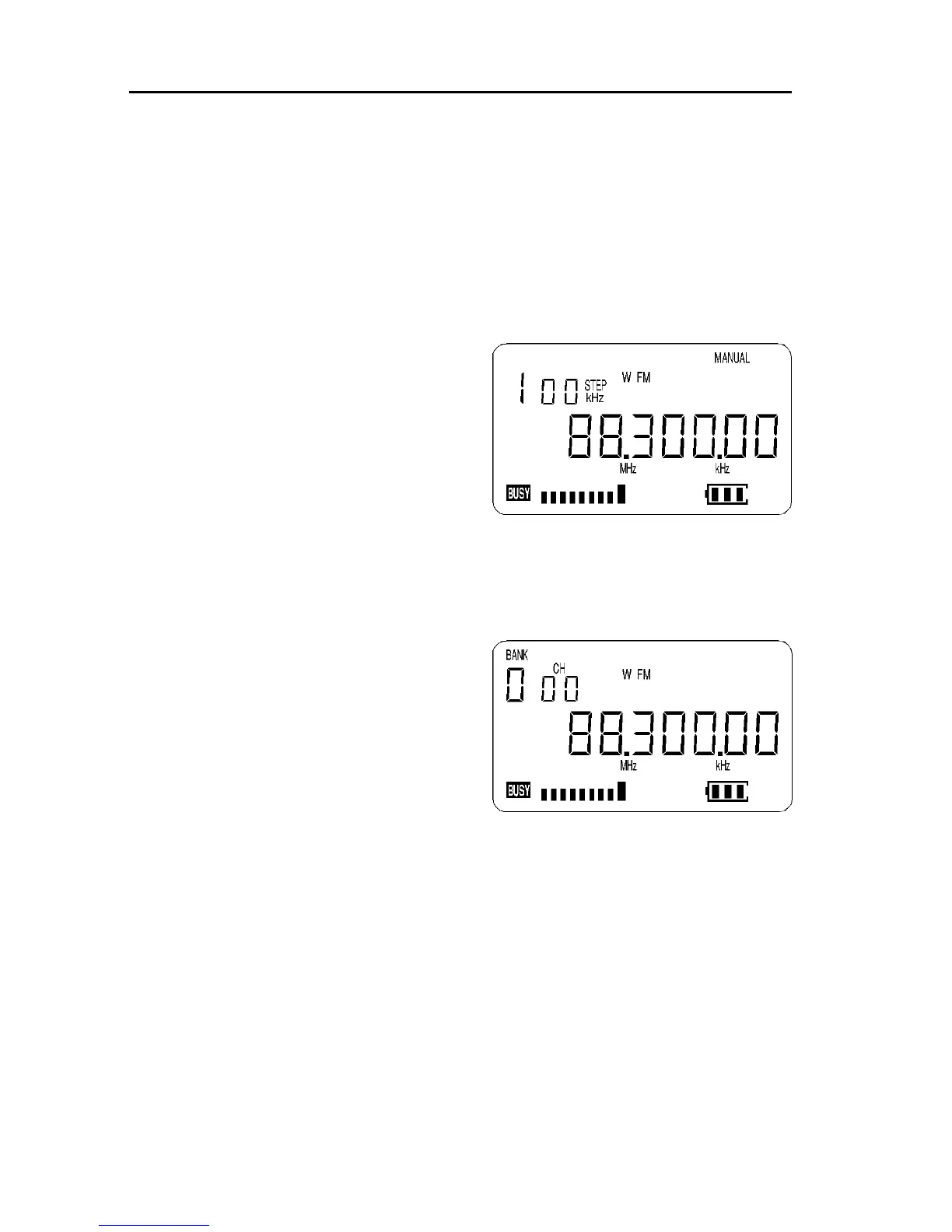 of 88.3 MHz, “mode and step size” are set to the default of PROGRAM.