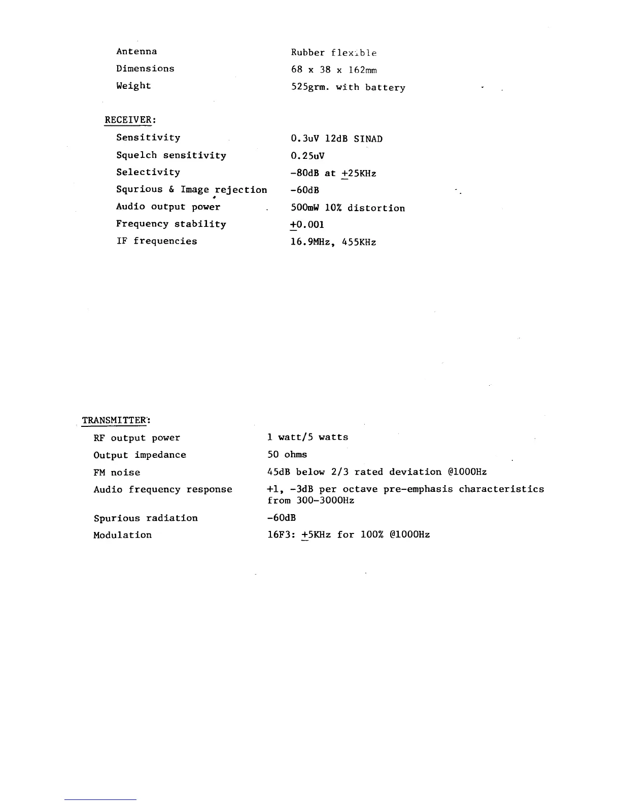 AOR AR280 - Specifications; Receiver; Transmitter