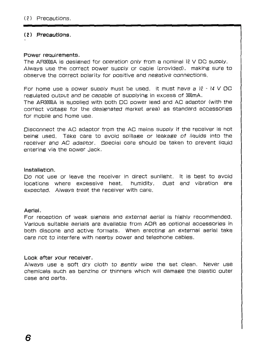 AOR AR3000A - Important Precautions for AR3000 A