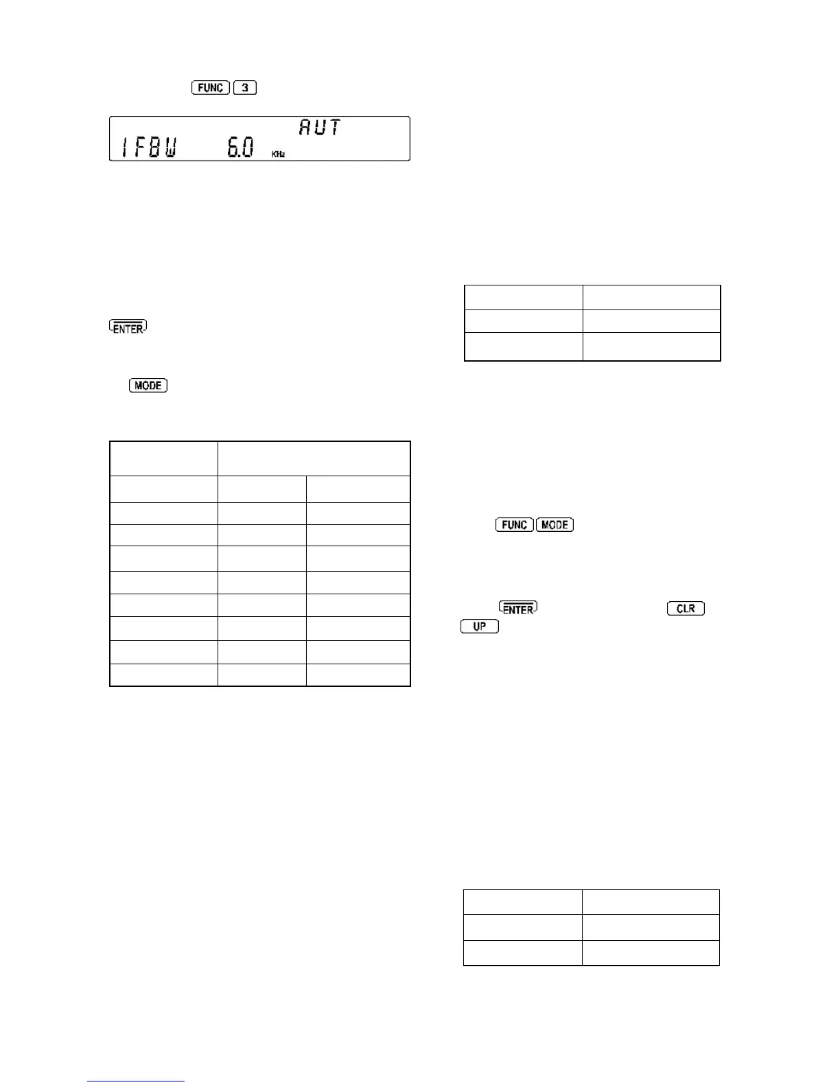 operation and the I.F. bandwidth, receive mode and