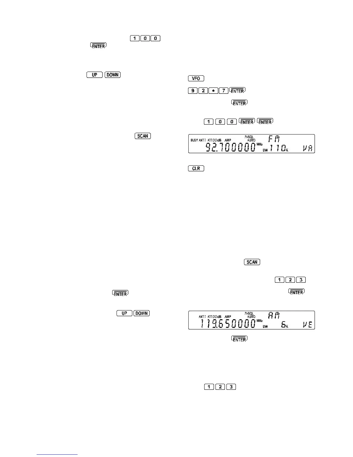 to place the receiver into VFO mode.