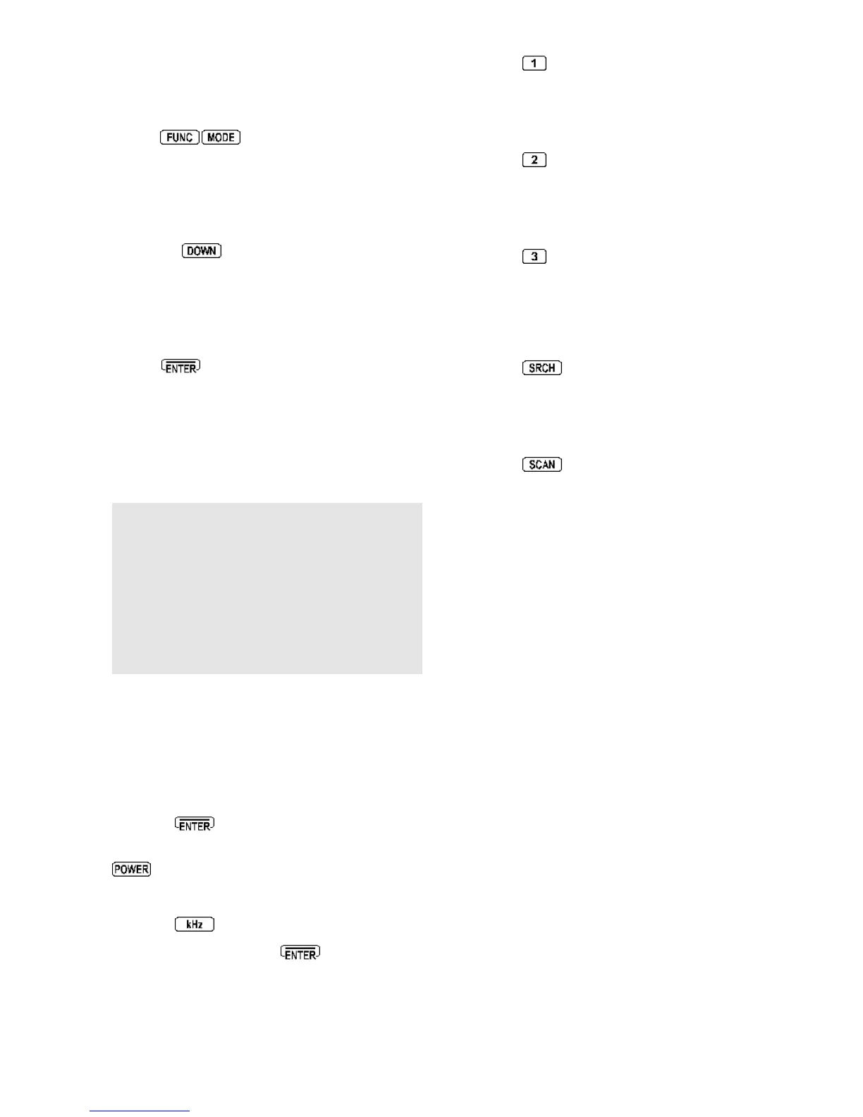 the receiver off, press and hold the specified key then