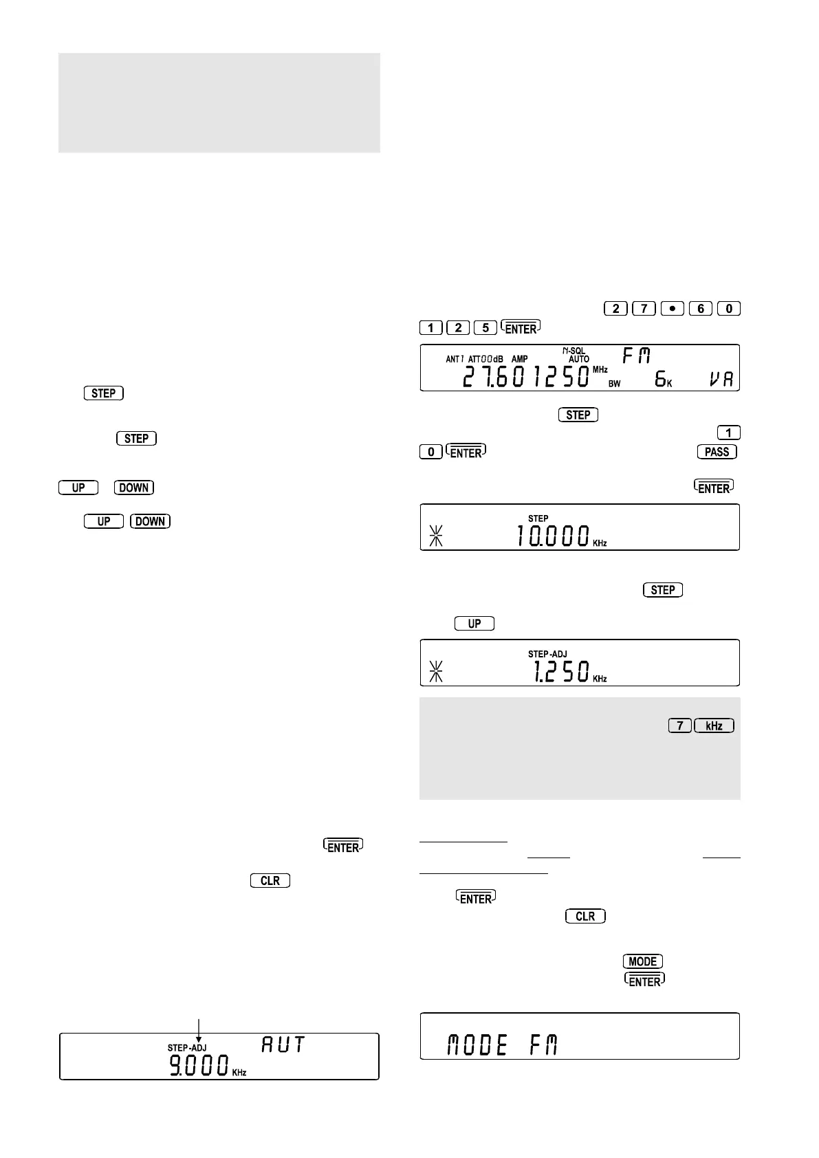 step menu. Select a step size of 10 kHz by pressing