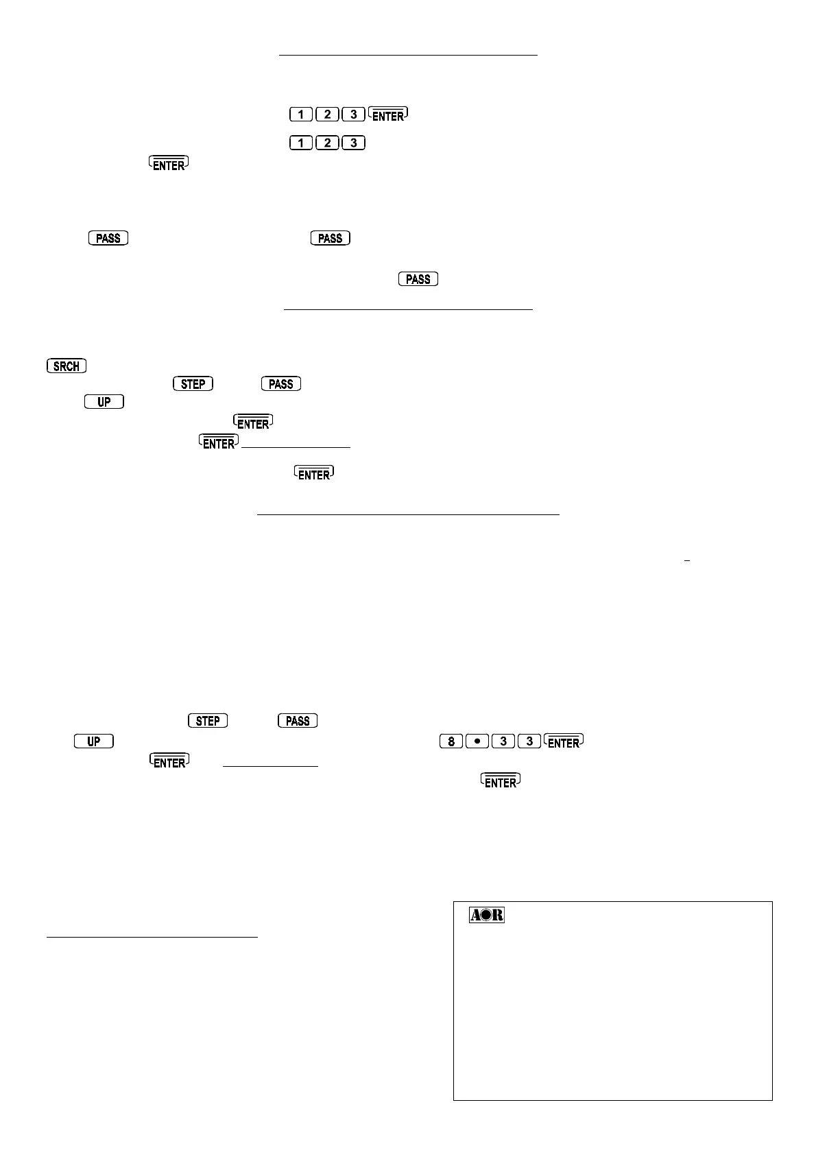 1. Program three program search banks with the limits 132.000 - 134.500 MHz in AUTO mode (AM 25kHz steps). Link all three search banks to form a single group... so