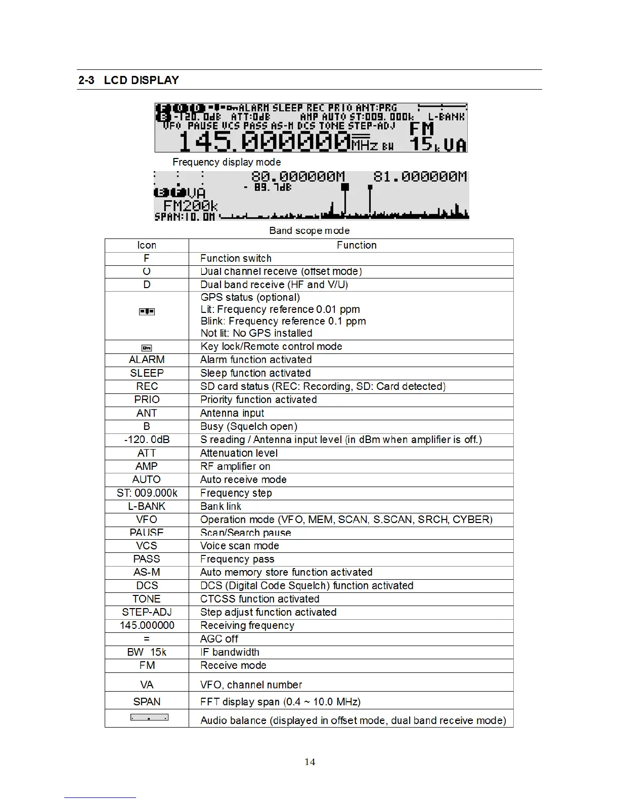 SPAN FFT display span (0.4 ~ 10.0 MHz)