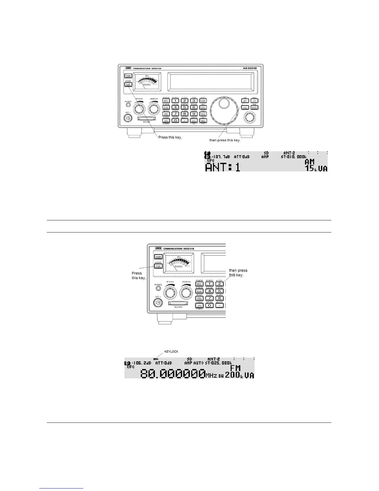 Press the [FUNC] key, and then press the [ATT] key to activate the antenna input selection menu.