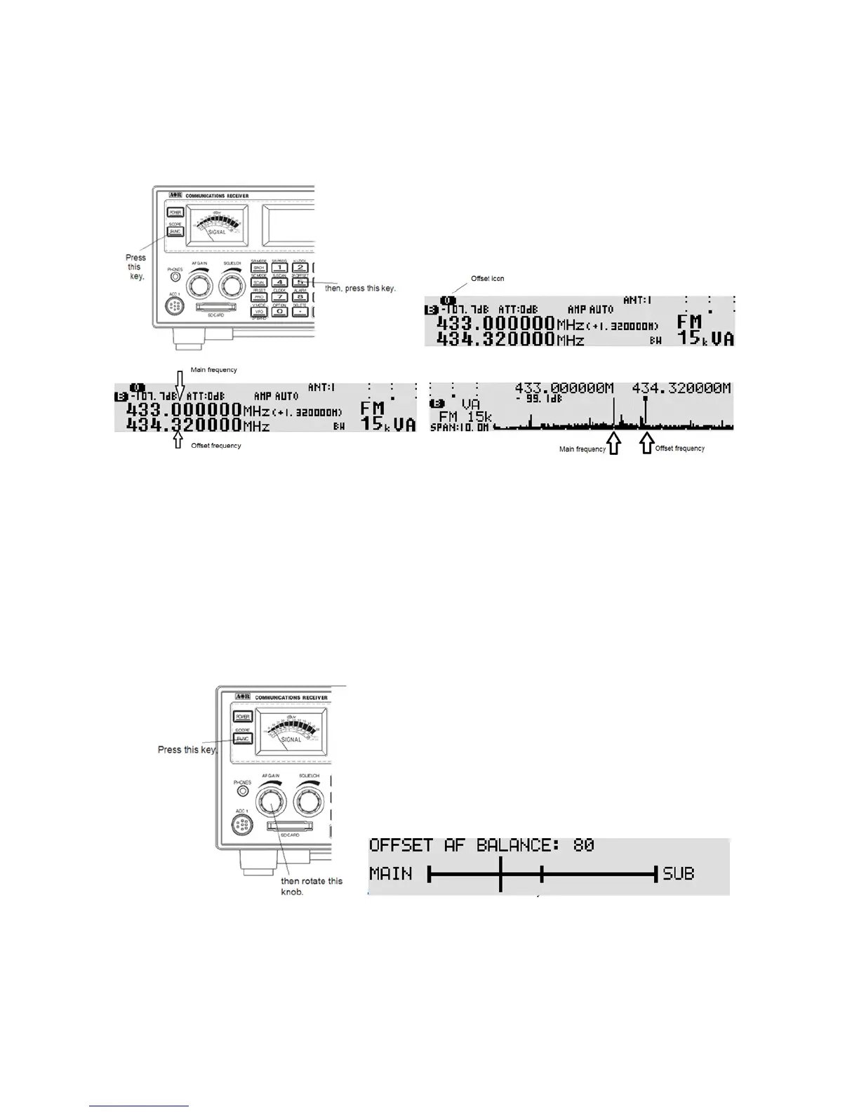 The offset frequencies can also be displayed in the spectrum display mode by pressing and holding the
