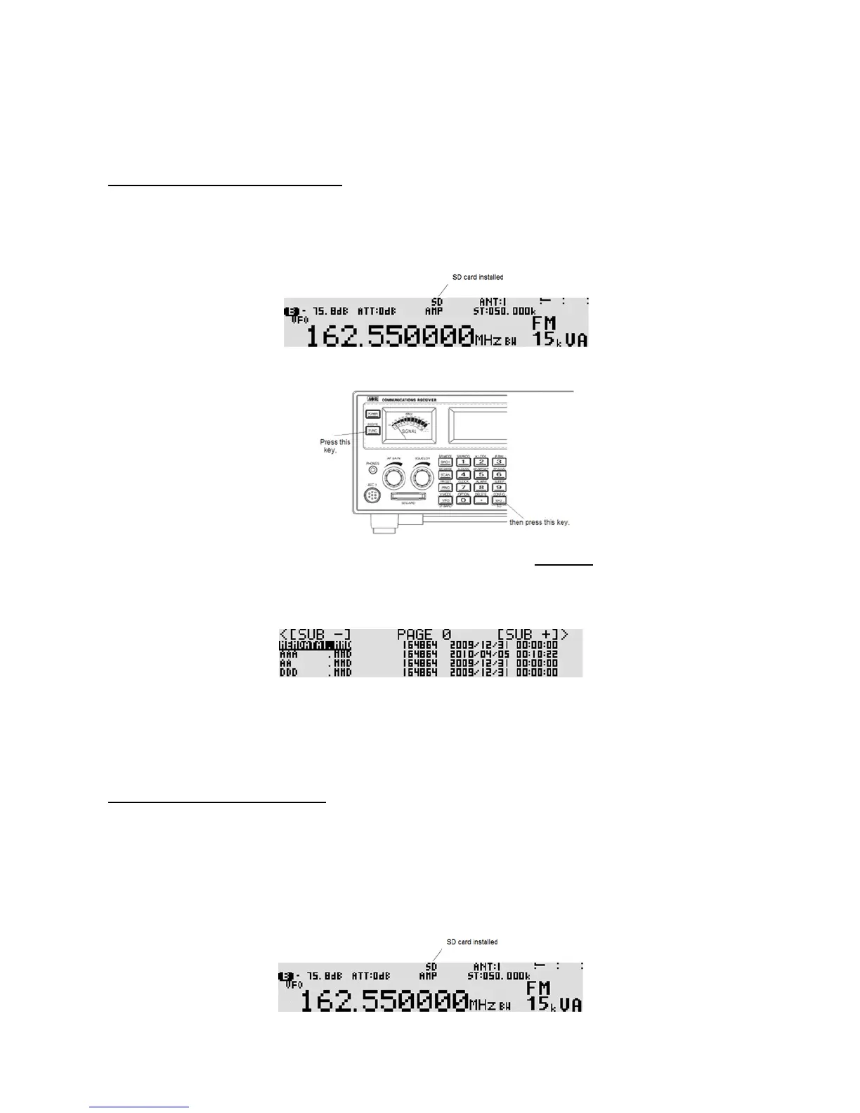 7. Press the [MHz] key. (An “SD CARD ERROR” message will be displayed if there is no file.)