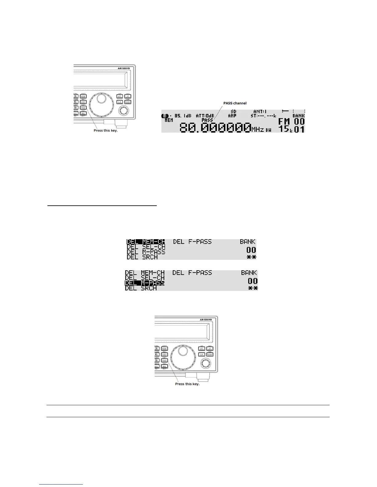 Pressing the [PASS] key again on the same memory channel will de-select pass channel.