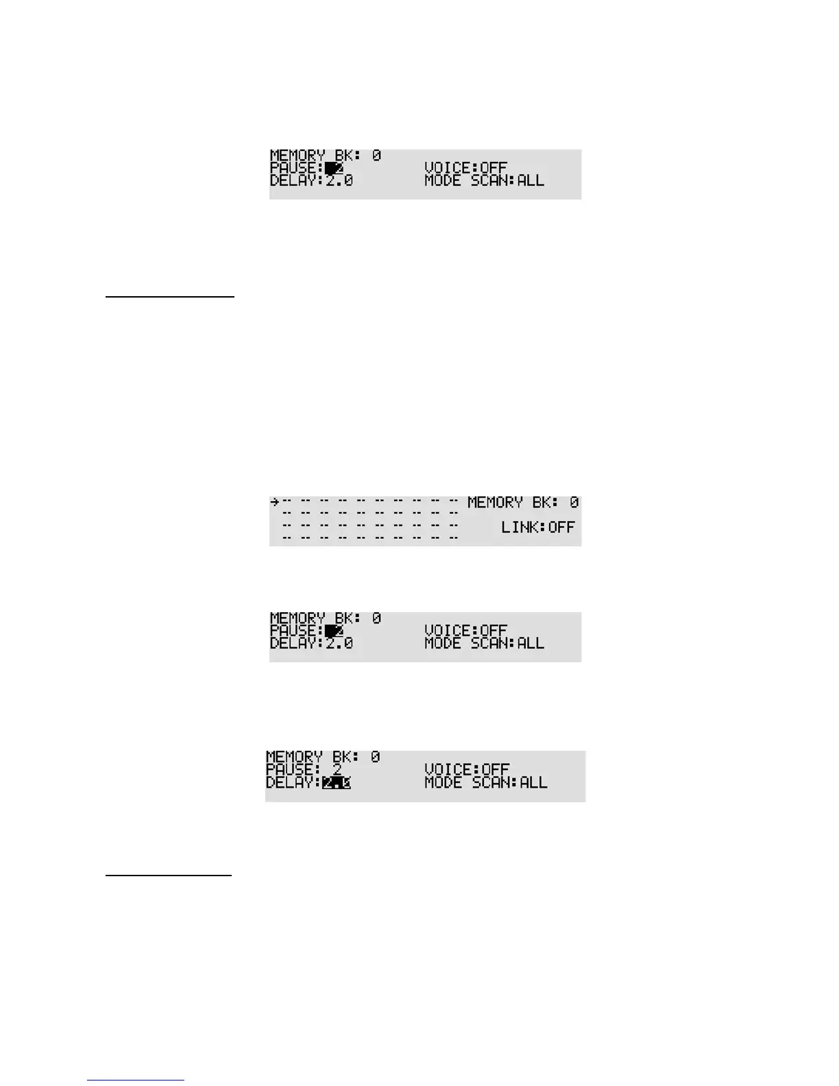 3. Rotate the sub dial to set scan pause parameter (between 1 ~ 60 or off). To set scan pause to