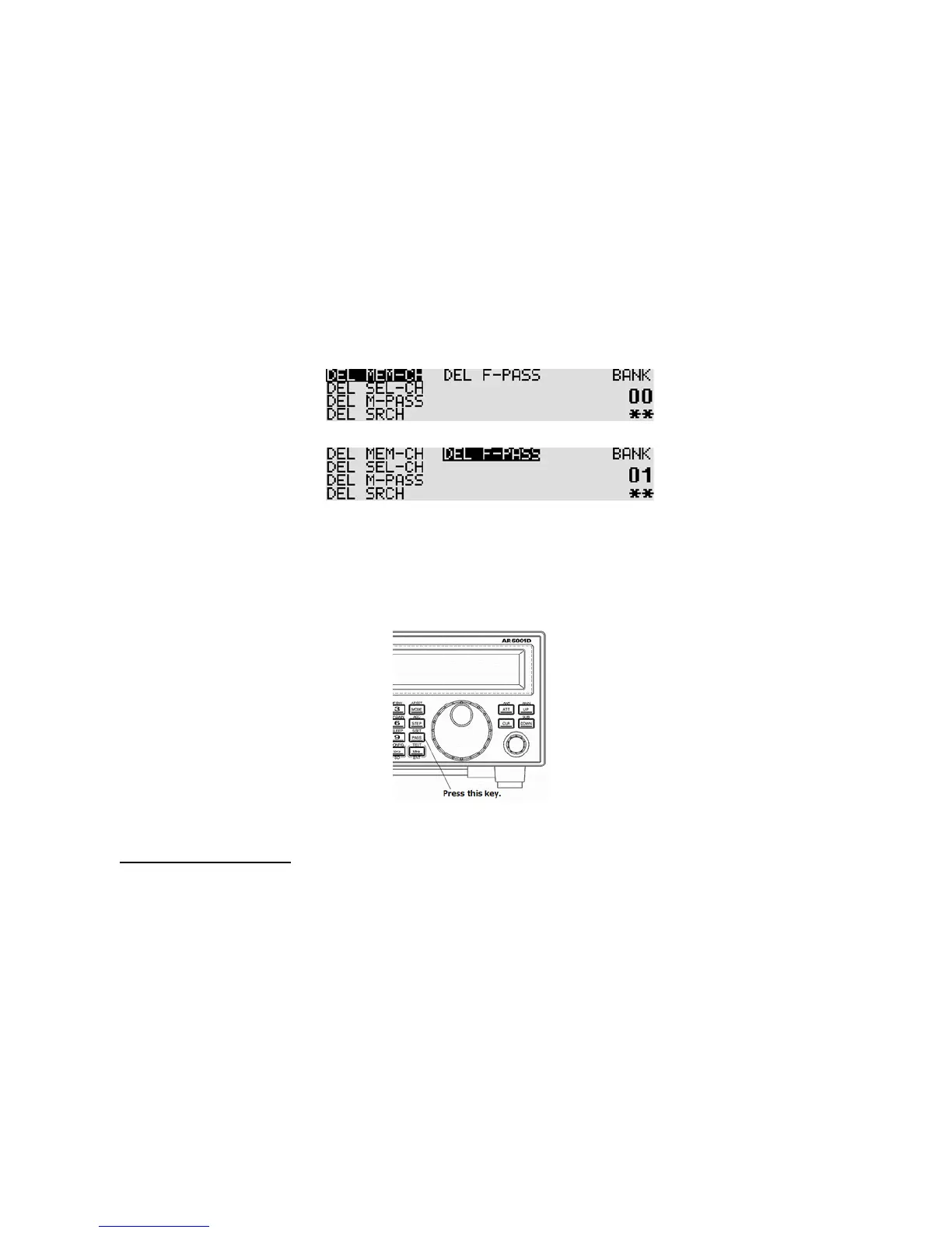 To delete search pass bank (all channels in a search bank), perform the following steps: