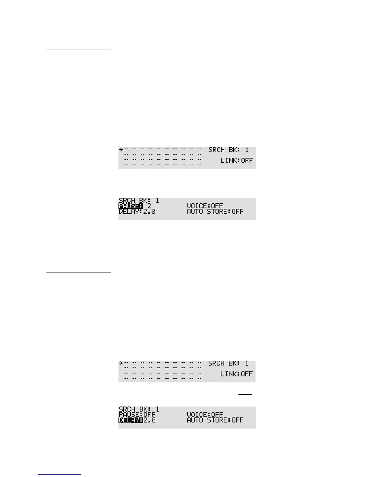 resuming searching even if the frequency is still busy. Search pause helps keep you from having to