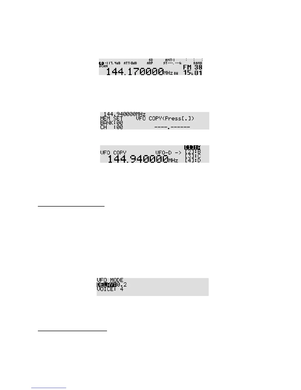 When the VFO voice squelch function is activated, the audio will be muted on unmodulated voice