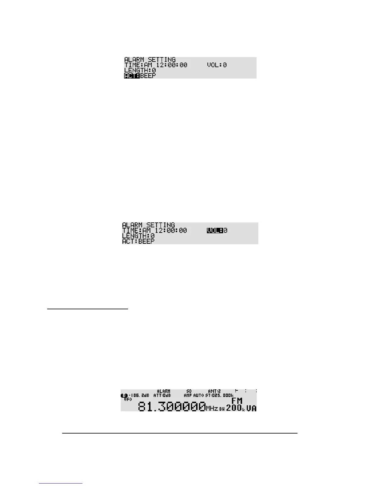 Once the alarm has been activated, “ALARM” will be displayed on the top middle of the LCD. The