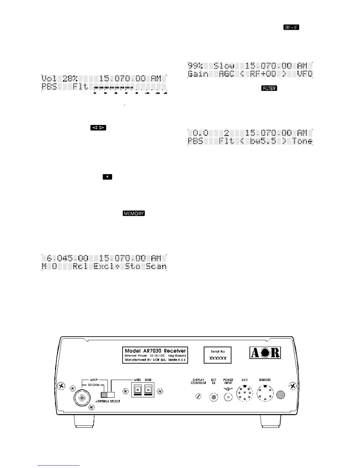 as pass band shift (PBS), IF gain, squelch etc. The function