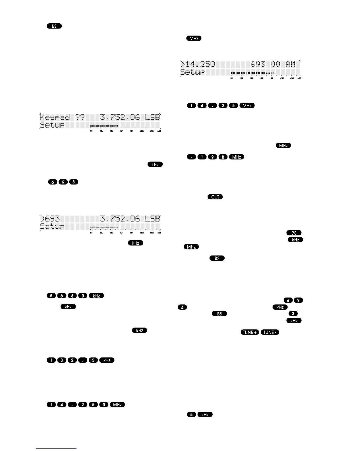 As the frequency is entered through the keypad, the digits