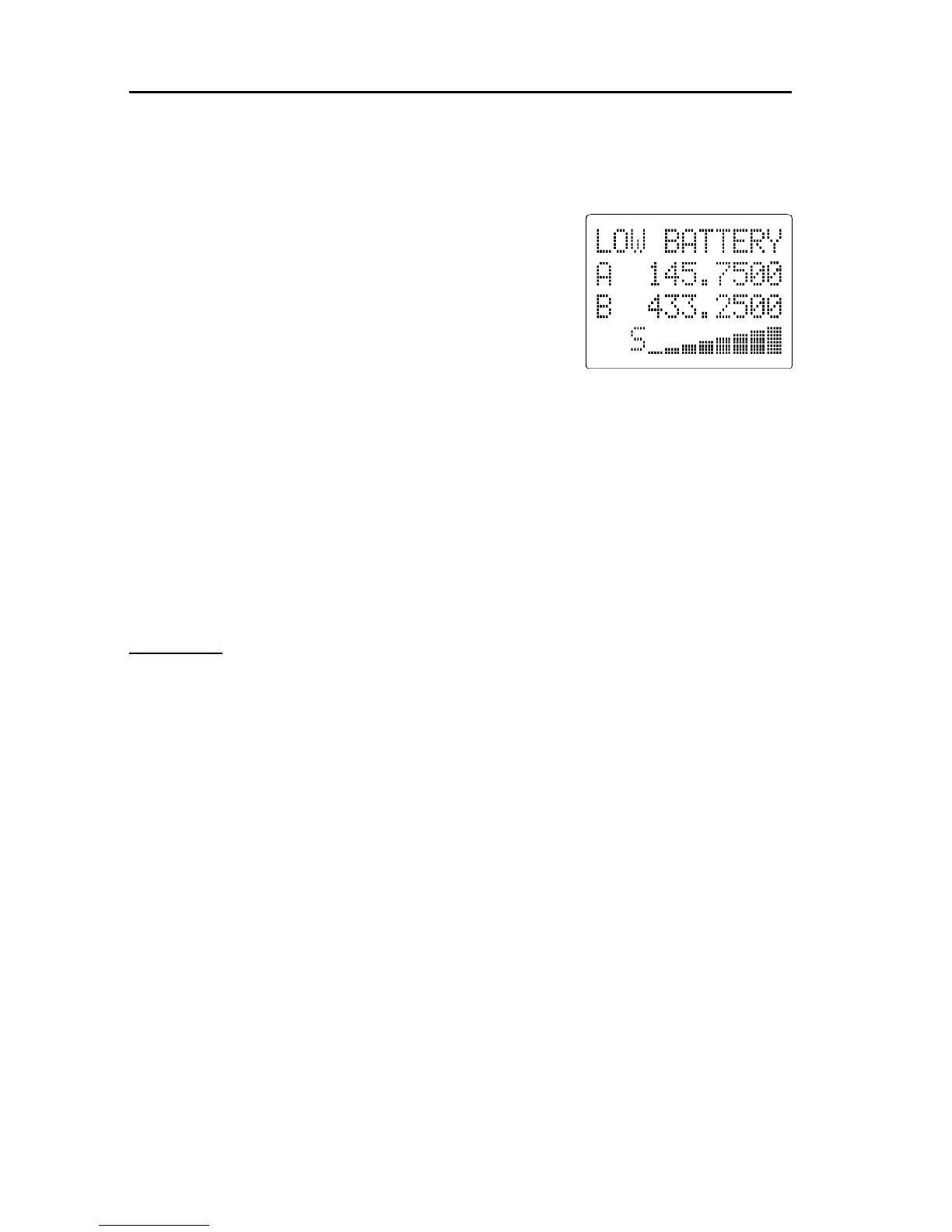 The “LOW BATTERY” indication appears when the battery voltage drops to