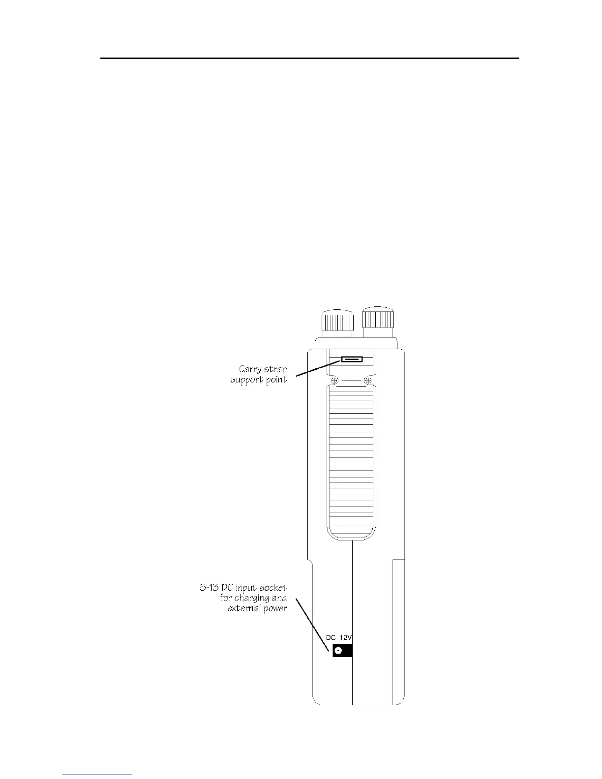 The DC socket is used to charge the internal NiCad batteries using the charger