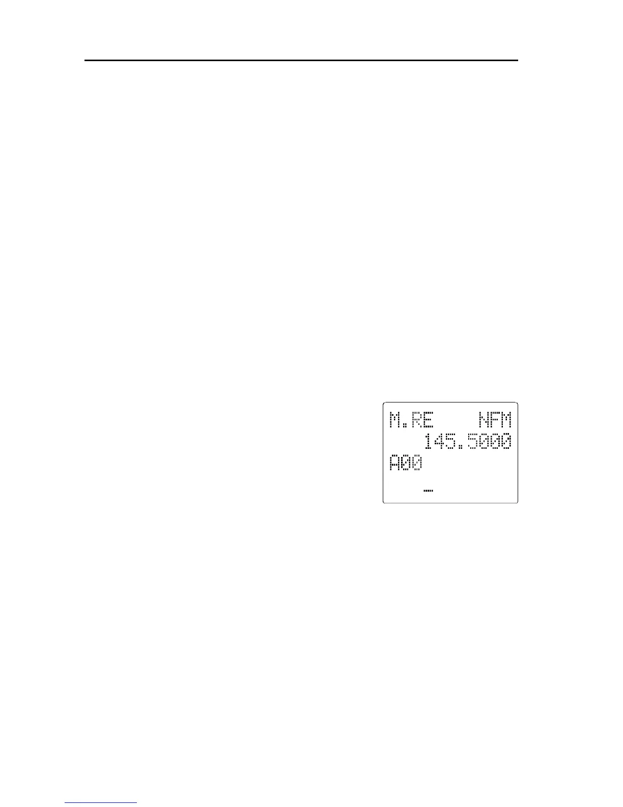 The receiver will monitor whatever memory channel is displayed in “M.RE”