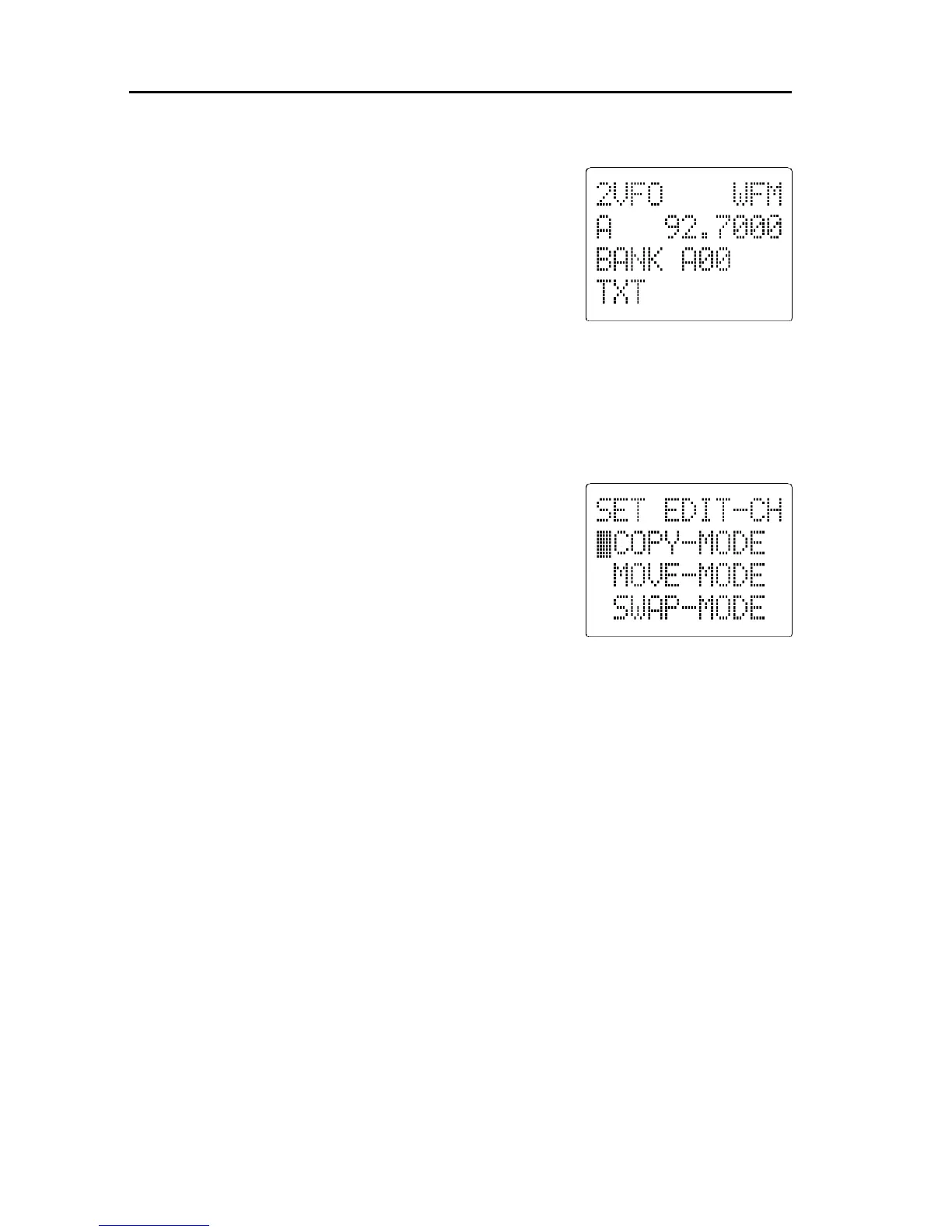 To select the “COPY-MODE” sub menu first access the SET EDIT-CH menu by