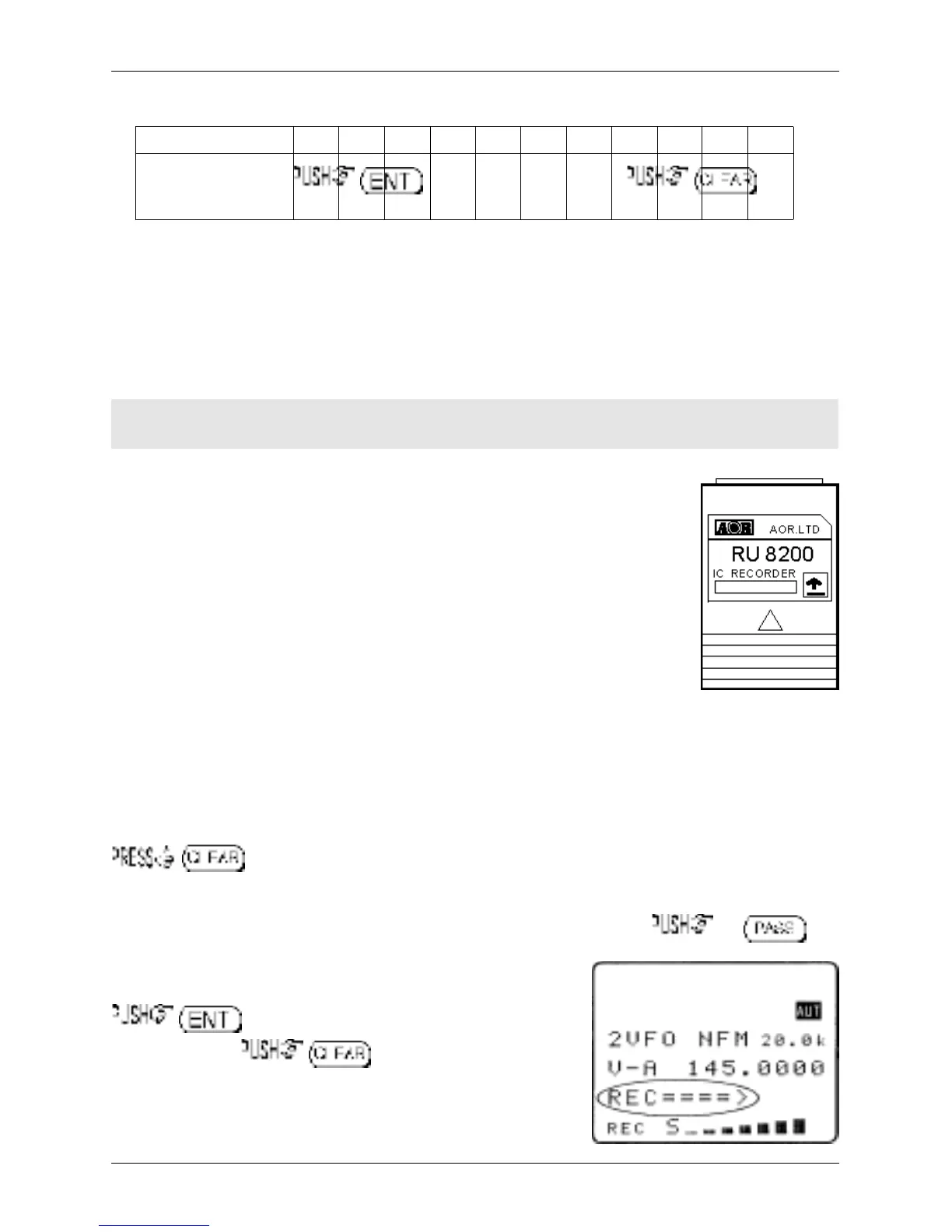 The legend “RECORDER” confirms selection of the record & playback menu. the key