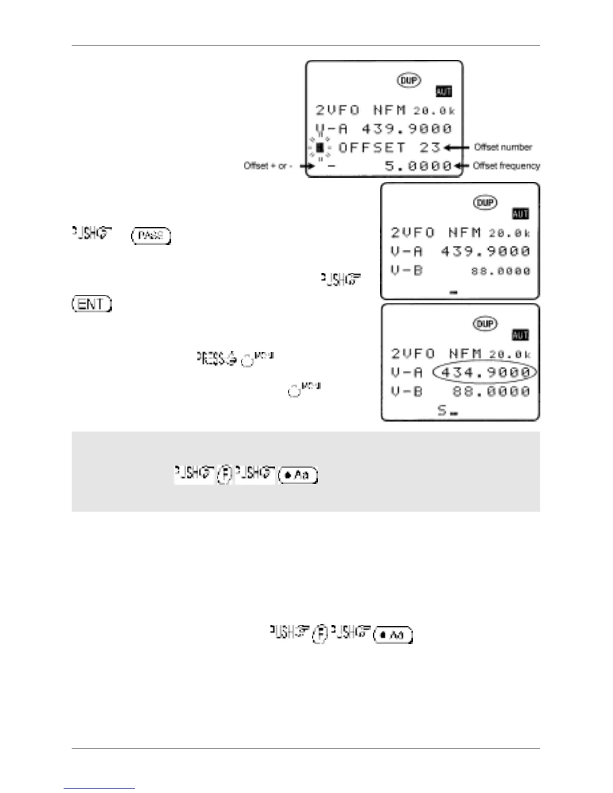 The third line will display “OFFSET 00” with “00” if the frequency offset is currently off, there will be no