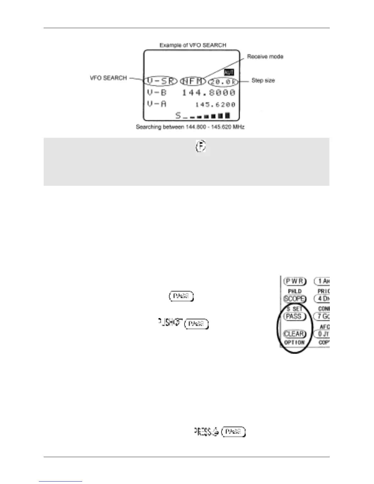 It is possible to lock out (PASS) unwanted frequencies while in VFO search mode,