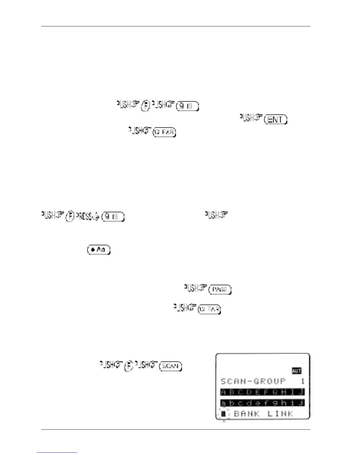 the “SCAN GROUP” menu. Bank “SCAN GROUP 0” contains a