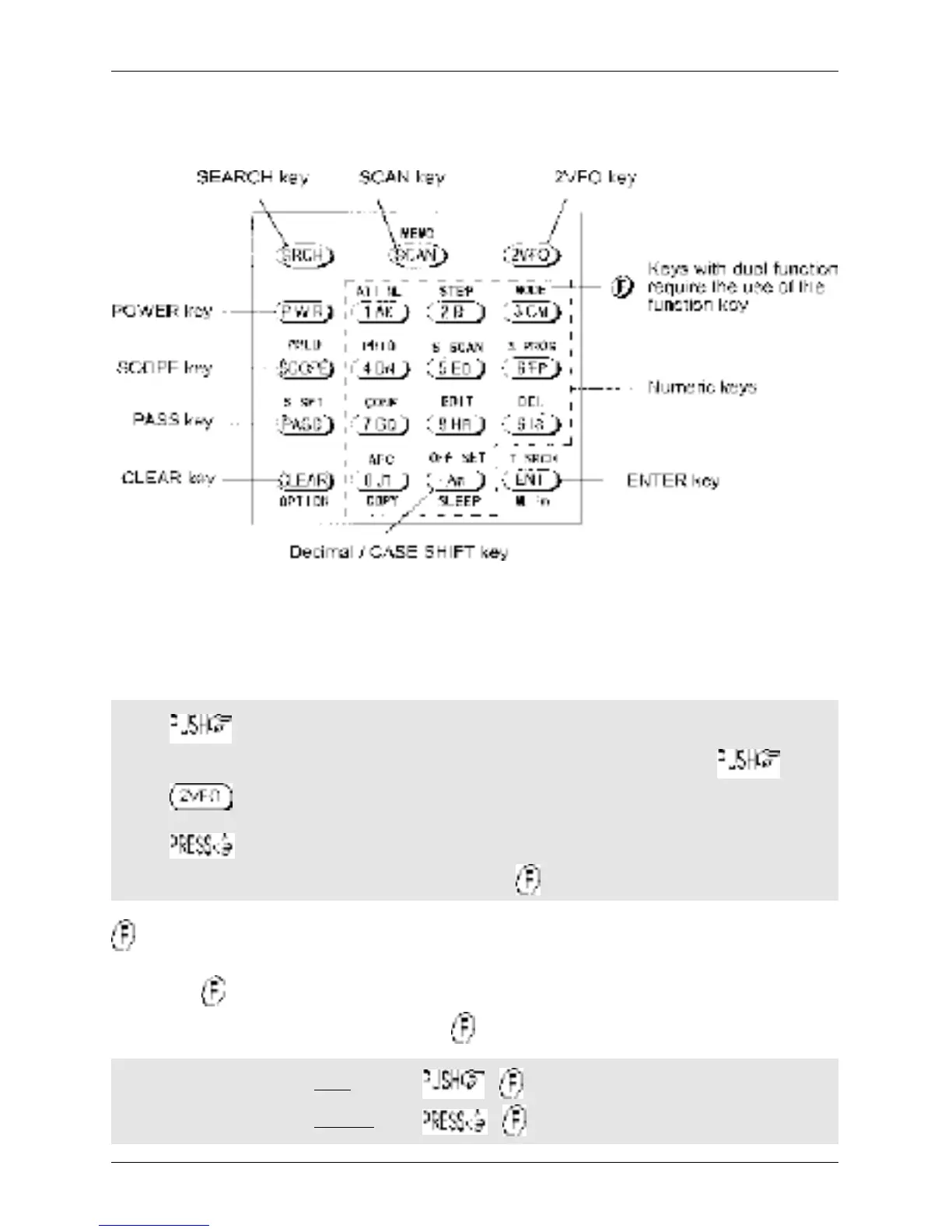 The key also may be used by PUSH and PRESS depending upon the specific