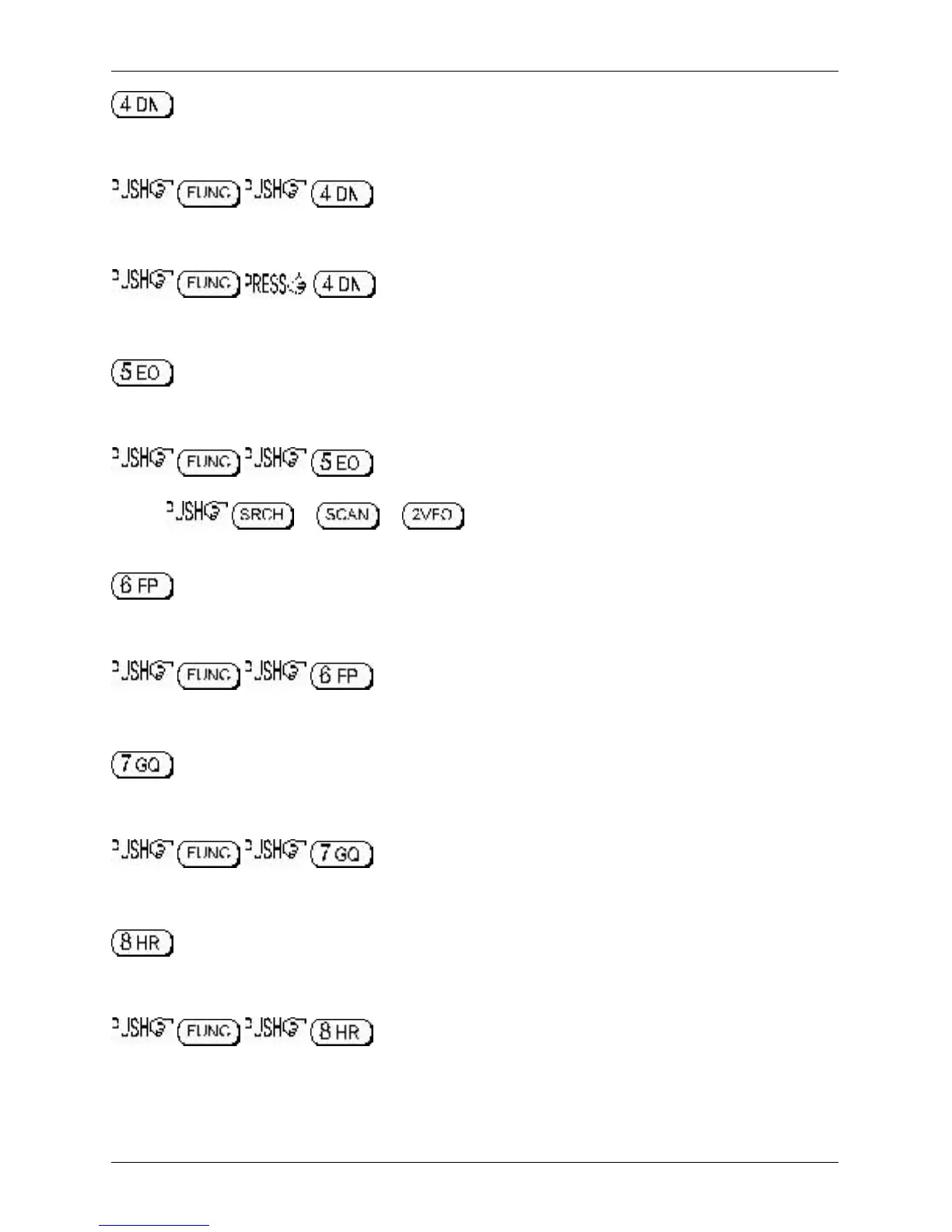 Numeric figure four during frequency input. Selection of memory/scan bank “D” or “d” and search bank